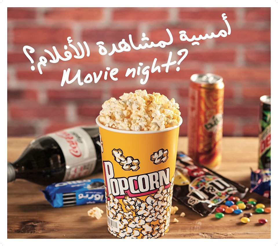 For a blockbuster evening: fresh popcorn, classic candy, and sodas
